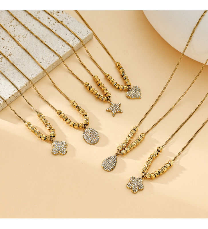 Collares acero Dorado flor 2610100008356